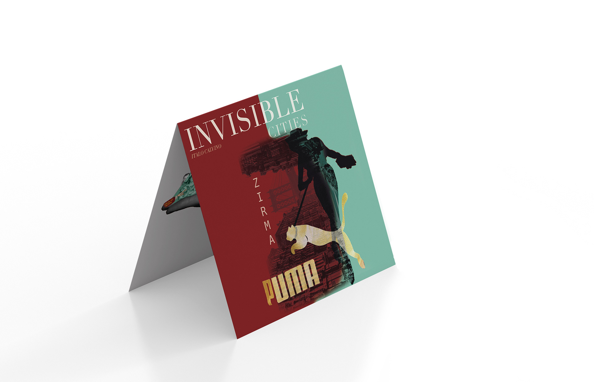 Collage style bifold based on the city Zirma from the book Invisible Cities.